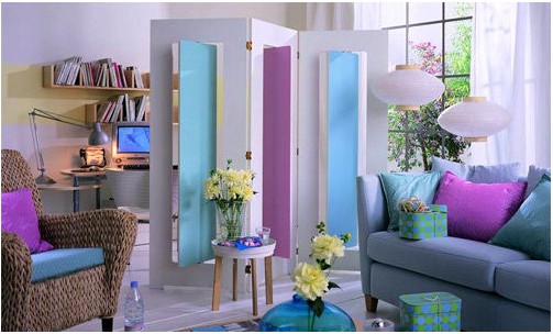 度假風(fēng)格搭配:白(bái)色地闆+圓點收納盒+三色屏風(fēng)